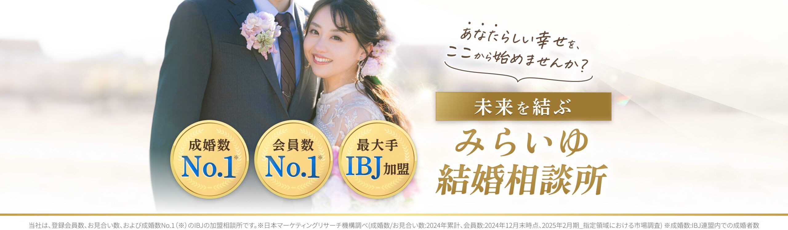 当社は、登録会員数、お見合い数、および成婚数No.1(※)のIBJの加盟相談所です。